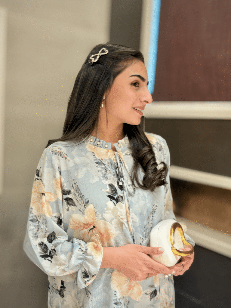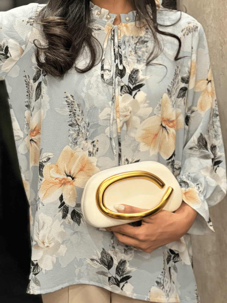 The Light Blue Floral Top brings delicate charm to everyday dressing. Crafted from airy chiffon, it offers the perfect combination of comfort and grace. The soft floral pattern enhances your feminine side, making it ideal for casual outings, brunch dates, or weekend gatherings.