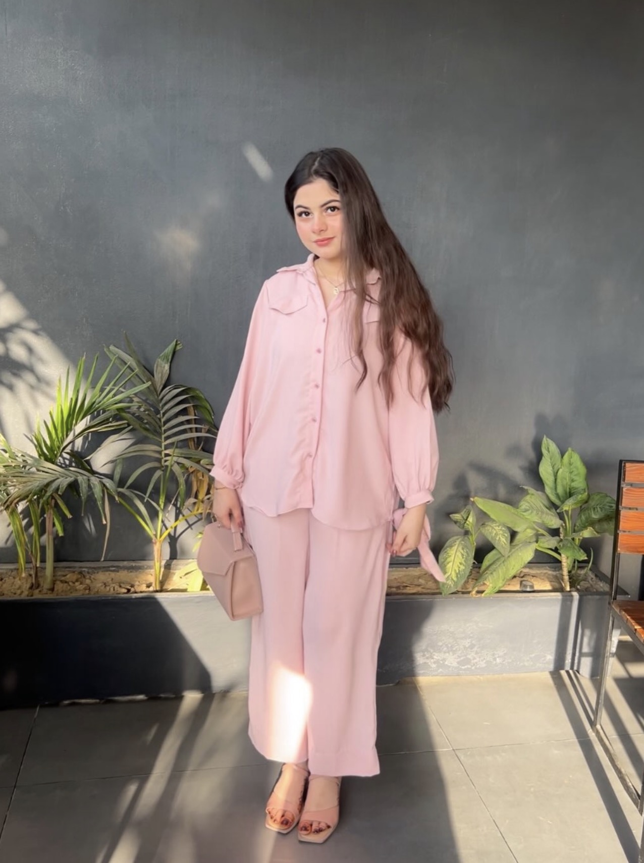 A soft and feminine 2-piece georgette outfit in a delicate blush shade, designed for graceful movement and effortless elegance.